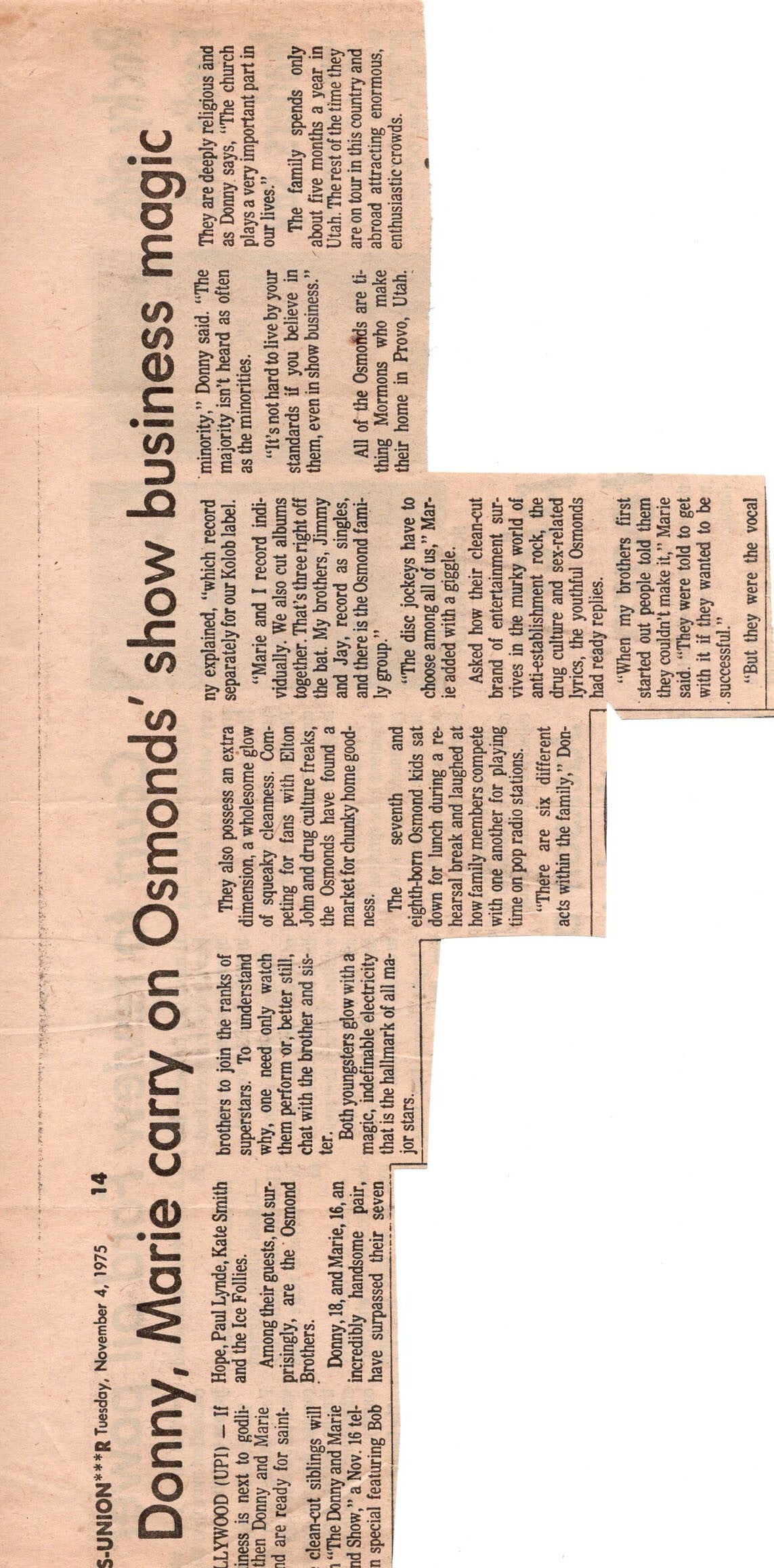newspaper article Osmonds